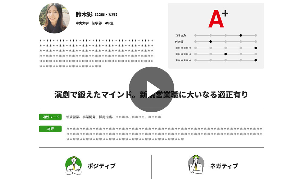 最大30項目の評価で、求職者の性格や志向をしっかり把握。